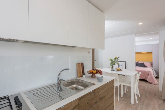 Next Generation is the mobile home style pointing to the future, it can be customized in various ways, both in terms of inner and outer layouts. Elegant design for kitchen and living area. MOBILE HOME TOUR > NEXT GENERATION LAYOUT (PDF)